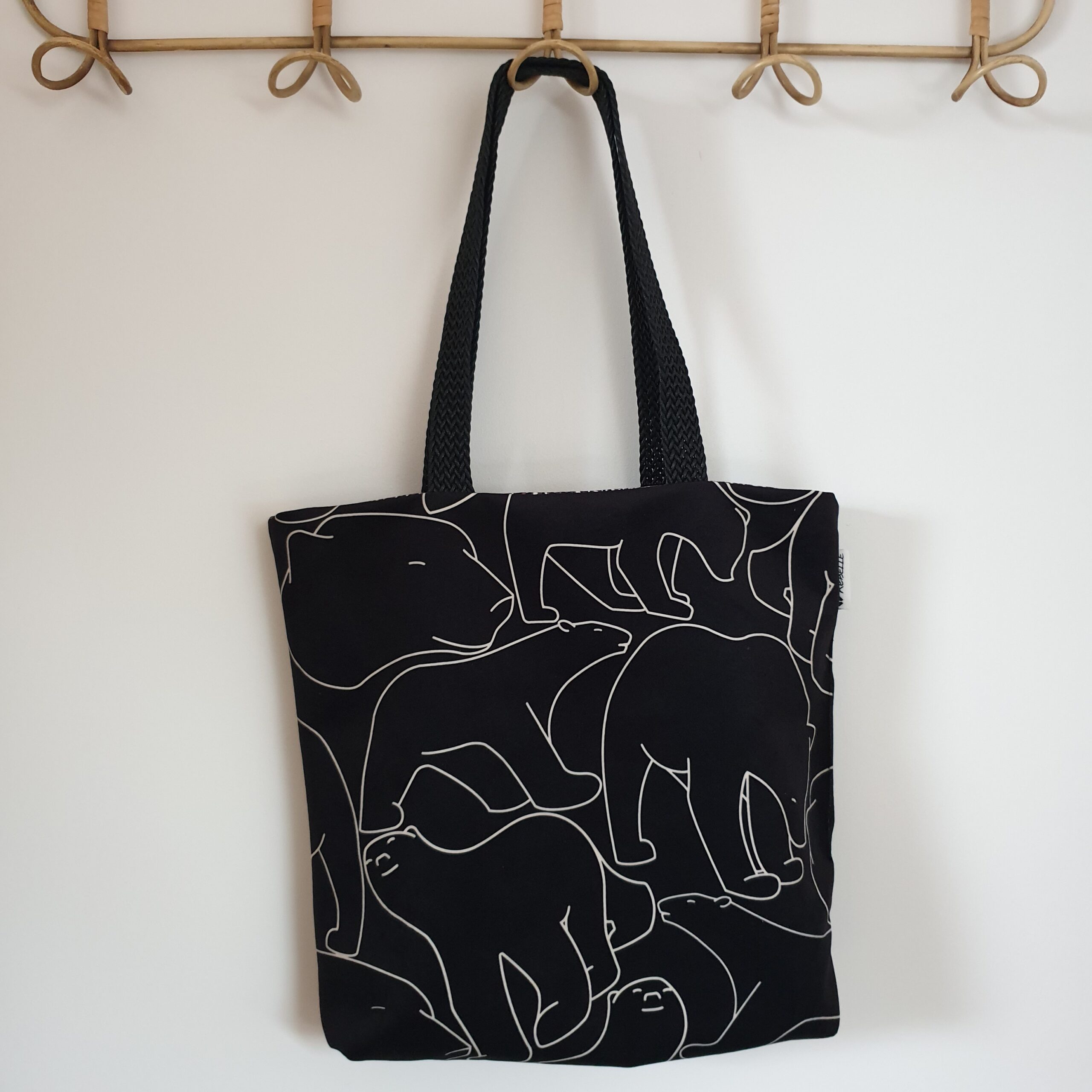 L’ours a été observé sous tous les angles par François Pompon. Ce motifs assemblant toutes les silhouettes tracées des différentes sculptures est un bel hommage à l’œuvre de l’artiste. Le sac est doublé avec une poche intérieure.